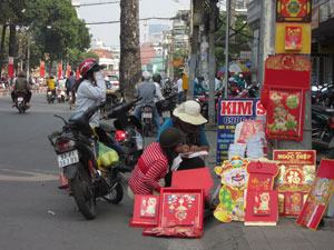 Tại một cửa hàng dịch vụ trang trí Tết trên đường Hải Thượng Lãn Ông còn bày bán lịch Tết block các loại. Bà chủ cửa hàng cho biết, mỗi cuốn lịch block lớn nổi xi vàng hẳn hoi có giá chỉ từ 25.000 đồng trở lên, mua 2 cuốn tặng 1 cuốn. Trong khi đó, giá trị thật của mỗi cuốn này có giá gấp đôi, thậm chí gấp ba lần. Cũng tại cửa hàng này, loại lịch block có bìa bế nổi, ép kim, dán nổi phun nhung chỉ bán với giá 30.000 đồng/ cuốn. Thắc mắc vì giá quá bèo, người bán thú thật: “Hàng công ty in bị lỗi, không bán được nên mang ra ký gửi mong vớt vát tiền in, tiền giấy và phí gia công”.