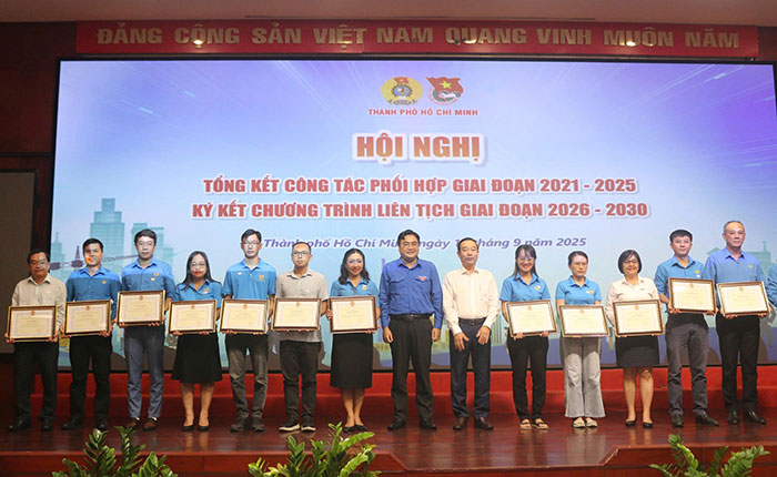 Tại hội nghị, Liên đoàn Lao động TP.HCM và Thành đoàn TP.HCM đã ký kết chương trình phối hợp giai đoạn 2026-2030; đồng thời tặng bằng khen cho nhiều đơn vị có thành tích xuất sắc trong công tác phối hợp triển khai các hoạt động tại cơ sở.