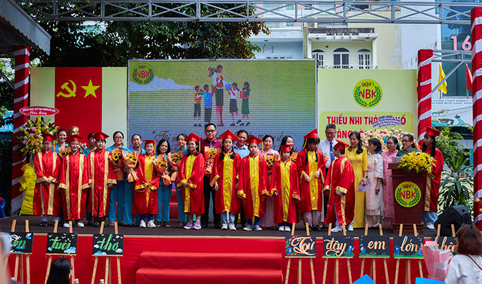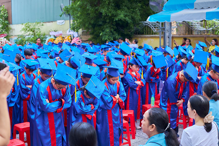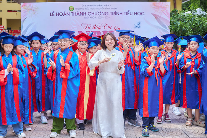 Trong lễ ra trường của 303 học sinh lớp 5 năm học 2024-2025, cô Đỗ Ngọc Chi – Hiệu trưởng Trường Tiểu học Nguyễn Bỉnh Khiêm, quận 1 nhắn nhủ, rời mái trường tiểu học sẽ là một hành trình mới, mang theo hy vọng, những ước mơ trong trẻo và cả hành trang đầy yêu thương.