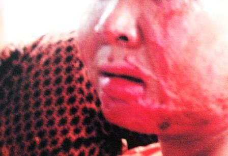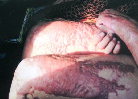 Toàn thân cháu Hiệp đến nay vẫn còn chằng chịt những vết thương đau đớn