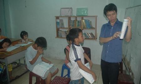 Phòng học vốn là trụ sở cũ của ban điều hành khu phố 5. Ở lớp học này “thầy cô” đang là sinh viên nên cũng chật vật nhưng trò còn khổ hơn: mỗi buổi tối các em đến lớp với bộ quần áo còn dính đầy bụi bặm, mùi khét nắng, “mùi” của công việc hằng ngày mà các em làm. Đó là bán vé số, lượm ve chai…