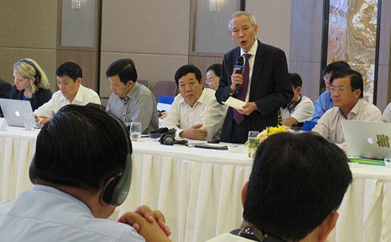 GS.TS Trần Thụ – Phó Chủ tịch Hội đồng tư vấn của Ủy ban Quốc gia về biến đổi khí hậu – trả lời thắc mắc của đại biểu tại hội thảo