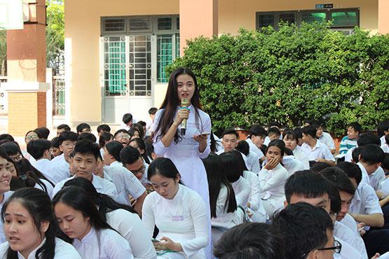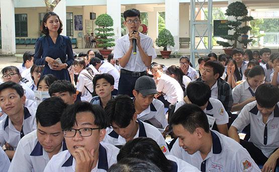 Học sinh Trường THPT Nguyễn Văn Cừ đặt câu hỏi cho ban tư vấn |