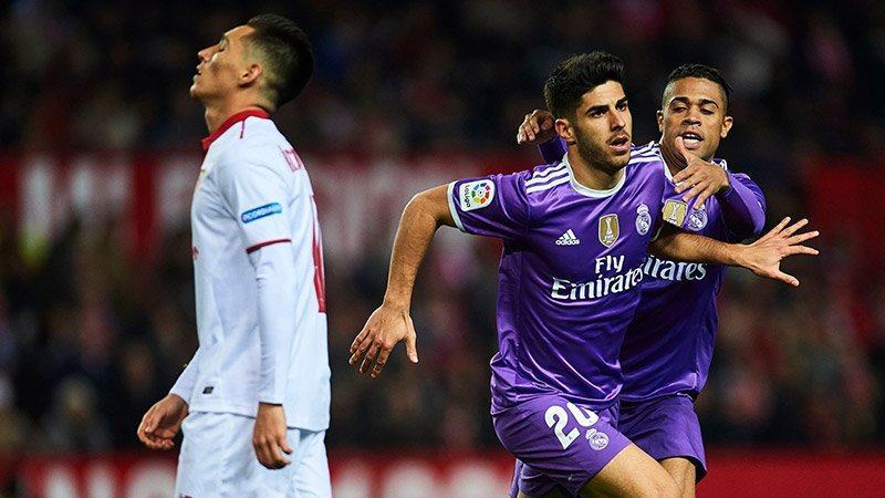 Ngay đầu hiệp 2, Marco Asensio lập siêu phẩm gỡ hòa cho Real. Sau pha phạt góc của Sevilla, bóng bật ra đến chân Asensio và anh thực hiện màn độc diễn từ sân nhà, trước khi đánh bại Soria.