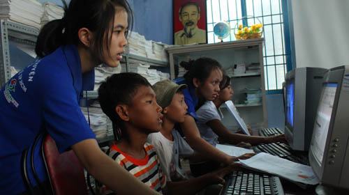 | Dạy tin học cho trẻ em đồng bào Khmer tại xã Vĩnh Hải (huyện Vĩnh Châu, Sóc Trăng) – Ảnh: PHƯỚC TUẦN |