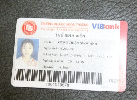 | Chiếc thẻ sinh viên Ánh sử dụng để ra vào trường ĐH Ngoại thương. Ảnh: N.Anh |