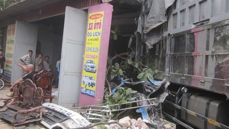 Tại hiện trường, phần tường cả 3 ngôi nhà trên bị sập nhiều ở phía mặt ngoài đường quốc lộ, 2 chiếc xe máy, nhiều bộ bàn ghế và thiết bị đồ dùng trong 3 ngôi nhà bị hư hỏng. Phần đầu chiếc xe tải bị rúm lại, tuy nhiên lái xe chỉ bị thương nhẹ. Hàng chục tấn lân đạm trên thùng xe cũng bị đổ sập xuống đất.