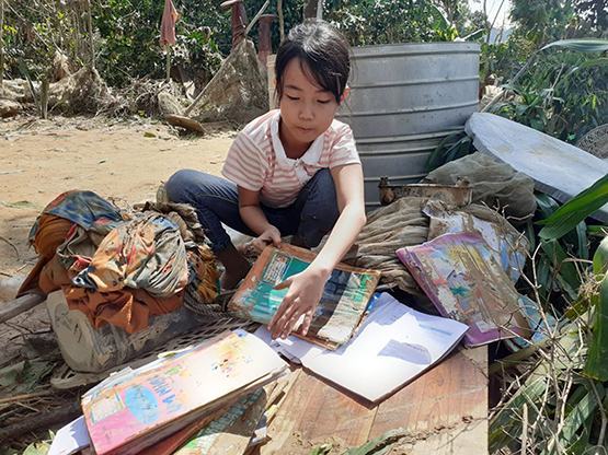 HS Quảng Bình tìm sách vở trong bùn đất sau lũ
