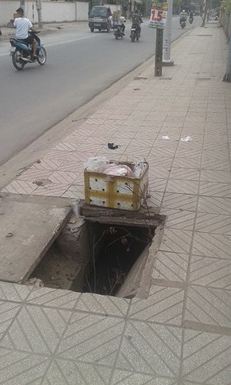 Một miệng hố ga bị gãy hỏng nắp từ nhiều tuần nay (đường Cách Mạng Tháng 8, khu phố Hòa Long, phường Lái Thiêu, thị xã Thuận An, Bình Dương), tạo thành một hố sâu hun hút, và nó chẳng khác nào một cái “bẫy” trên vỉa hè, khiến khách bộ hành nào chỉ cần lơ đễnh không chú ý là rất có thể sa xuống bất cứ lúc nào, mặc dù có ai đó đã đặt một chiếc thùng rác gần đó với ý “cảnh báo” (xem ảnh)!
