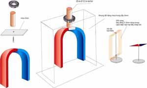Vật tư chuẩn bị: Nam châm chữ U; kim nam châm nhỏ; các bấm kim loại mua; khung dây dẫn hình chữ nhật 3cm x 5cm, quấn  200 vòng, loại 0,3mm (lưu ý, cạo hai đầu dây và hàn thành mạch khép kín);hai đế tròn mica 5mm và hai trụ bằng kim khâu loại may bao bố; khung mica trong 5mm kích thước WxHxD: 10 x 15 x 5(cm), cạnh trên chính gữa có khoét lỗ tròn đường kính 15mm; keo 502, dây chỉ để quấn, một đoạn vỏ bút bi 2cm; bạc đạn xe Honda đường kính trong 12mm, một đoạn gỗ tròn đường kính 12,3mm dài 5cm, tấm mica nhỏ 3mm 2 x 4(cm)