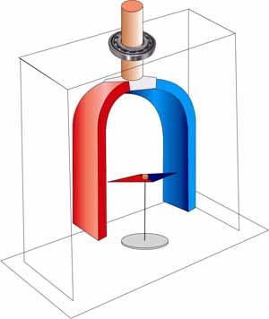 Đặt kim nam châm vào giữa nam châm chữ U (hình 2), xoay tròn nam châm U, kim nam châm quay theo; nam châm U dừng, kim nam châm dừng. Giữa phần cảm và phần ứng hoạt động đồng bộ.