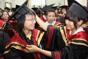 Tân cử nhân Trường ĐH Sài Gòn trong buổi lễ nhận bằng tốt nghiệp. Ảnh: A.Khôi |