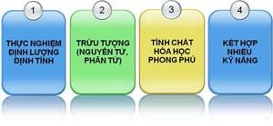 Đặc điểm của bộ môn hóa làmang tính thực nghiệm cả về định tính và định lượng. Khái niệm hóa học luôn trừu tượng, khó hiểu, không quan sát bằng mắt thường được (như nguyên tử, phân tử…). Ngoài ra bộ môn này còn kết hợp các kỹ năng cần thiết như: Kỹ năng quan sát, tổng hợp, phân tích, đánh giá, suy luận; kỹ năng vận dụng kiến thức vào bài tập; kỹ năng tính toán.