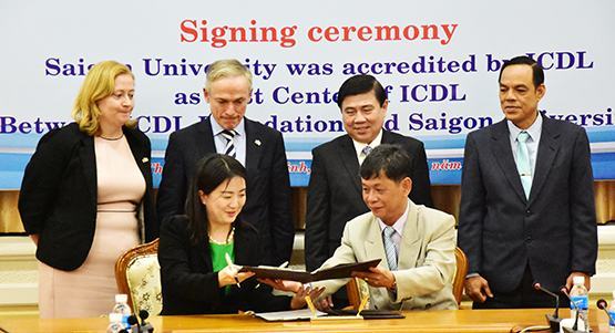 Dịp này cũng diễn ra lễ ký kết thỏa thuận Trường ĐH Sài Gòn là trung tâm khảo thí ICDL giữa Tổ chức ICDL và ĐH Sài Gòn.