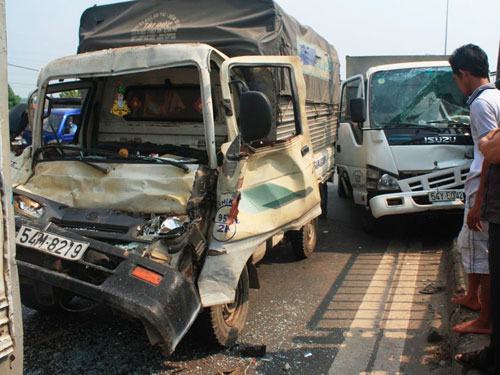 Cùng lúc này, tài xế Lí Xà Ri (32 tuổi, quê Sóc Trăng) điều khiển xe tải cũng không xử lý kịp đã để xe lao vào cột đèn chiếu sáng nằm trên dải phân cách.