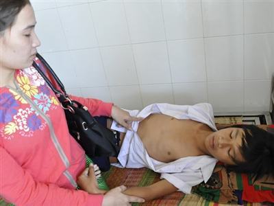 Trưa 24-11, cháu Huỳnh Thế Huy (học sinh lớp 7, trường THCS Bình An, huyện Kiên Lương, Kiên Giang), phải nhập viện trở lại do bị ngất với các triệu chứng mà bác sỹ theo dõi chẩn đoán có thể bị chấn thương sọ não.