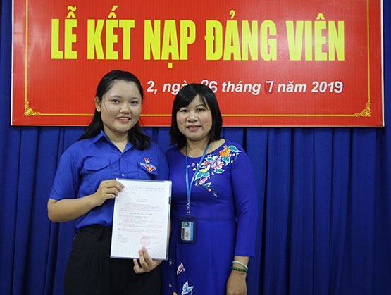 Cô Võ Thị Huyền trao quyết định kết nạp Đảng cho Phương Thảo
