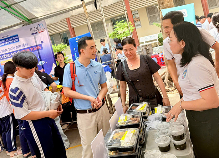 Tại ngày hội “Một ngày làm học sinh và hướng dẫn chọn nguyện vọng lớp 10 năm học 2026-2027” của Trường THPT Thủ Đức, phường Thủ Đức, TP.HCM, phụ huynh học sinh lớp 9 trên địa bàn TP.HCM đã đầy hào hứng khi được trải nghiệm bữa ăn bán trú của trường, song song đó khám phá các môn học bậc THPT thông qua hoạt động CLB.