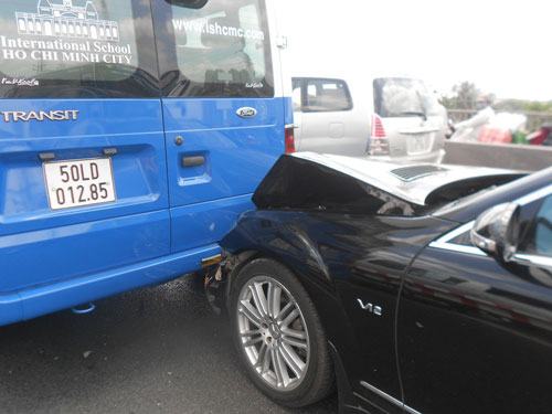 Khi vừa đến gần giữa cầu, bất ngờ, tài xế phanh gấp. Do đang lưu thông qua cầu với tốc độ khá nhanh chiếc xe khách BKS 50LD – 012.85 lưu thông cùng chiều phía sau không giữ khoảng cách an toàn đã tông vào đuôi xe ô tô phanh gấp.