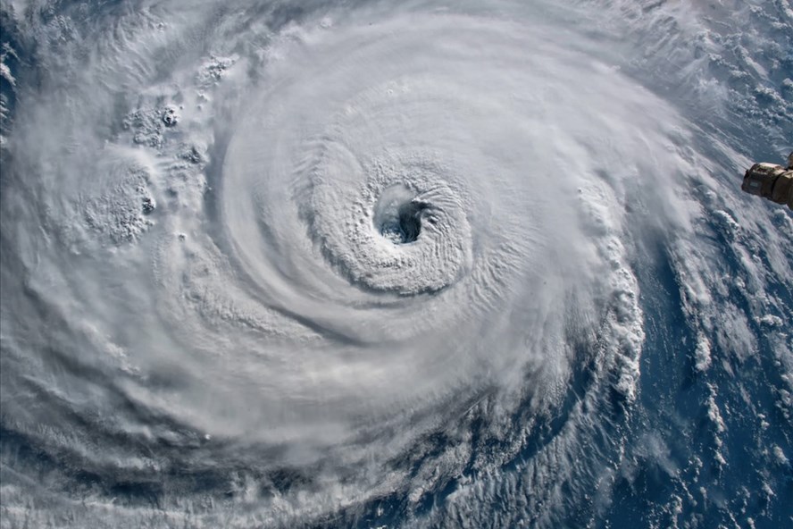 Ảnh vệ tinh cơn bão Florence, đổ bộ vào bờ biển phía Đông Mỹ năm 2018, gây ra nhiều thiệt hại ở Carolina.