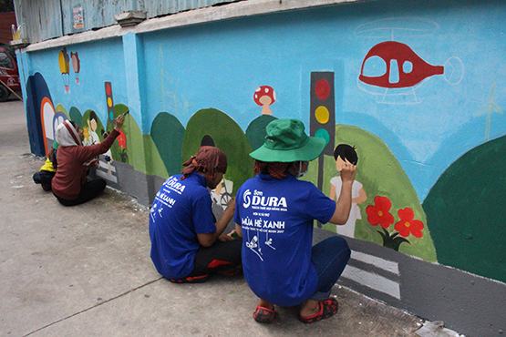 Đường phố, tường nhà dân trở nên sạch sẽ, đẹp đẽ nhờ những bức tranh của những chiến sĩ Mùa hè xanh