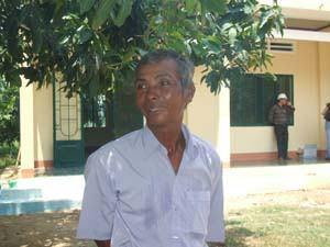 Ông Ba Hiếu trước ngôi trường vừa được xây dựng trên đất của ông |