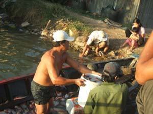 Chiếc xuồng chở cá vừa thu hoạch của ông Ba Hiếu |