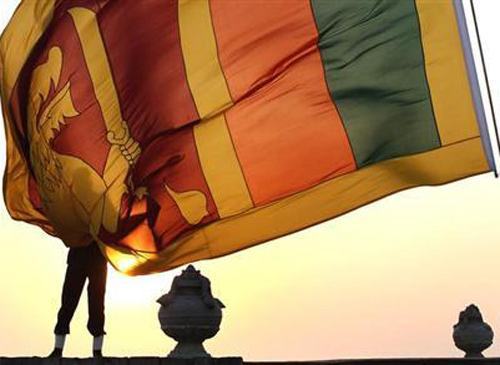Một người lính Sri Lanka đang tung cờ quốc gia – Ảnh: Reuters