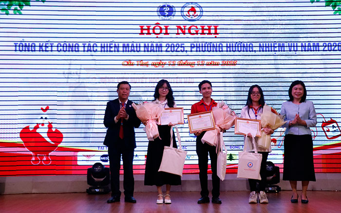 Dịp này, Ban tổ chức tôn vinh và khen thưởng 3 tập thể và 11 cá nhân tiêu biểu trong công tác vận động, tổ chức và tham gia hiến máu, đặc biệt người HMTN nhóm máu hiếm Rh âm, trong năm 2025.