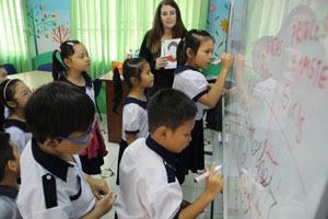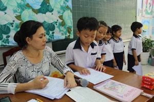 Từ năm học 2018-2019, chương trình – sách giáo khoa hiện hành sẽ được thay mới hoàn toàn. Trong ảnh: Giờ học tiếng Anh của Trường TH Nguyễn Bỉnh Khiêm (Q.1, TP.HCM).  Ảnh: A.Khôi