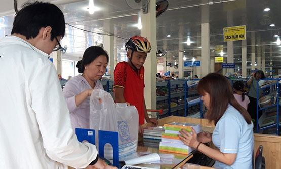 Phụ huynh mua SGK và đồ dùng học tập cho HS tại một cửa hàng trên địa bàn TP.HCM. Ảnh: M.Phương