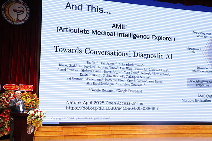 Đề cập đến việc áp dụng AI trong chăm sóc sức khỏe và đào tạo bác sĩ, GS. Eric Holmboe (Đại học Yale, Hoa Kỳ) phân tích:  AI có thể tham gia quá trình khám, chữa bệnh khi được con người huấn luyện kỹ; AI có thể phân tích diễn biến bệnh tật trong cuộc đời một con người, dự đoán những gì có thể xảy ra trong cơ thể và hỗ trợ lựa chọn can thiệp điều trị phù hợp: “Mô hình “bác sĩ AI” cho thấy những bước tiến vượt trội. Nhưng cũng tồn tại hiện tượng “ảo tưởng AI” và nguy cơ làm thui chột năng lực chuyên môn của bác sĩ. AI không thay thế được bác sĩ, nhưng bác sĩ sẽ làm việc tốt hơn khi có AI hỗ trợ” – GS. Eric Holmboe khuyến cáo.