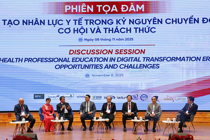 Chủ trì phiên tọa đàm là lãnh đạo Hội Giáo dục y học Việt Nam và ban lãnh đạo các trường đại học y dược trọng điểm của cả nước