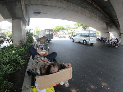 Người lao động ngủ dưới dạ cầu để tránh nắng ở TP HCM. Ảnh: Lê Phong