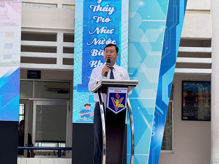 Phát biểu tại lễ kỷ niệm, thầy Ca Thanh Tòng, Hiệu trưởng nhà trường, bày tỏ sự xúc động khi nhắc về không khí tháng tri ân rộn ràng từ đầu tháng 11: hoạt động văn nghệ, thi đấu thể thao, trang trí lớp học và đặc biệt là những “bông hoa điểm 10” mà học sinh dành tặng thầy cô. Thầy nhấn mạnh nghề giáo hôm nay vẫn mang tinh thần kiên bền của thế hệ đi trước – những “người chiến sĩ” trên mặt trận tri thức, đổi mới công nghệ và áp lực xã hội ngày càng lớn.