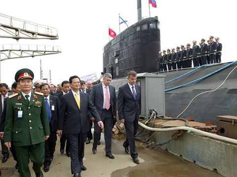 | Thủ tướng Nguyễn Tấn Dũng thị sát tàu ngầm Hà Nội trong chuyến thăm Nga hồi tháng 5. Ảnh: Chinhphu |