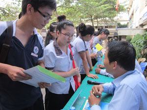 Nhiều học sinh đặt câu hỏi về ngành CNTT cho Ban tư vấn trong các buổi tư vấn tuyển sinh do Báo Giáo Dục TP.HCM tổ chức