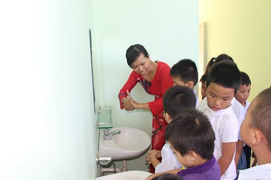Khuyến khích HS ra tay là mt cách phòng bnh truyn nhim tt nht. Ảnh: M.P