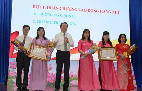 Dịp này, ngành GD-ĐT Q.11 đã khen thưởng các tập thể, cá nhân đạt thành tích xuất sắc trong năm học vừa qua, đồng thời phát động phong trào thi đua yêu nước trong năm học tới.
