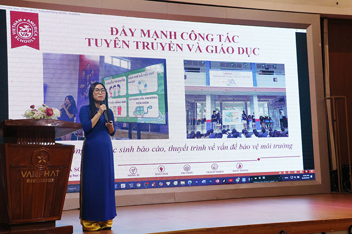 Thay mặt Hội đồng xét chọn Giải thưởng, GS.TS Nguyễn Thị Kim Cúc (Trường Đại học Thủy lợi) nhấn mạnh ý nghĩa của mô hình: “Trường học sinh thái không chỉ là danh hiệu, mà là nền tảng bền vững để chống rác thải nhựa, biến mỗi học sinh thành một đại sứ môi trường đích thực”.