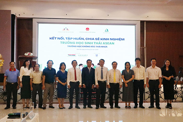 Nhiều cơ quan, các ngành chức năng và các trường học đã chia sẻ kinh nghiệm trong thực hiện… Ông Nguyễn Văn Hiền – Phó Giám đốc Sở GD-ĐT TP.Cần Thơ cho biết, đến nay 100% trường phổ thông các cấp của TP.Cần Thơ tích cực hưởng ứng; trên 60% trường triển khai phân loại rác tại nguồn và xây dựng “góc sinh thái”. Các em học sinh mang bình nước cá nhân tới trường, dùng hộp cơm nhiều lần, hạn chế túi nilon… Sở GD-ĐT TP phát động phong trào “Ngày không rác nhựa” trong toàn ngành, được nhiều đơn vị duy trì thành nếp sinh hoạt. Cần Thơ có nhiều mô hình giáo dục hiệu quả: Vườn sinh thái, vườn rau sạch phục vụ bữa ăn bán trú; liên kết doanh nghiệp thu gom rác tái chế gây quỹ học bổng; phong trào “Đổi rác nhựa lấy cây xanh” thu hút học sinh, phụ huynh. Năm 2024, Cần Thơ có 2 trường đạt giải “Trường học sinh thái ASEAN” (1 giải nhất của Trường phổ thông Việt Mỹ – Cần Thơ, 1 giải nhì của Trường THPT FPT Cần Thơ). Hai ngôi trường này và các trường đạt giải “Trường học sinh thái ASEAN” các năm trước, đã trở thành những tấm gương tiêu biểu trong việc gắn kết giáo dục – môi trường – cộng đồng.