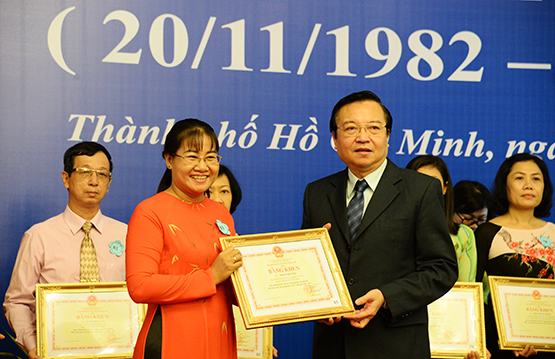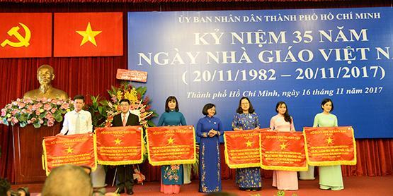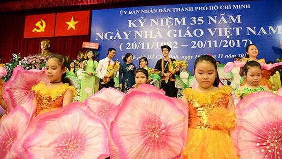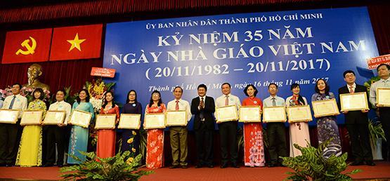 Sáng 16-11, UBND TP.HCM đã long trọng tổ chức Lễ kỷ niệm 35 năm Ngày Nhà giáo Việt Nam (20-11-1982 / 20-11-2017) và trao tặng các phần thưởng cao quý của Nhà nước, Chính phủ, Bộ GD-ĐT và của UBND TP cho các nhà giáo, tập thể trường học tiêu biểu, xuất sắc.