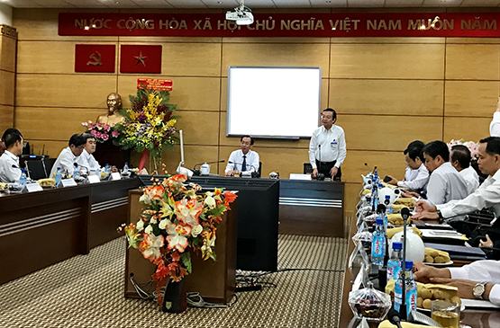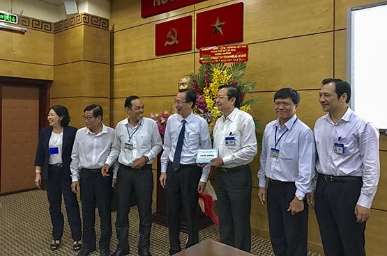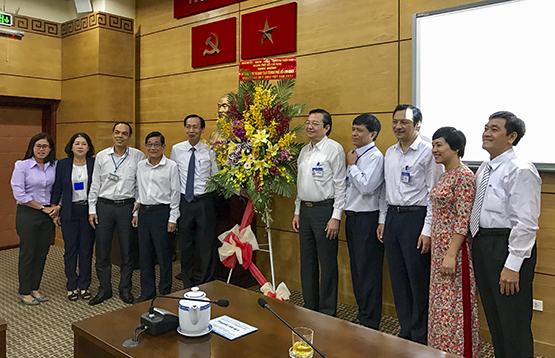 | Ông Lê Thanh Liêm đại diện lãnh đạo UBND TP. HCM tặng hoa chúc mừng |