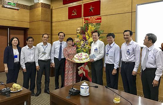| Đại diện Văn phòng UBND TP. HCM tặng bánh chúc mừng Ngày 20-11 |