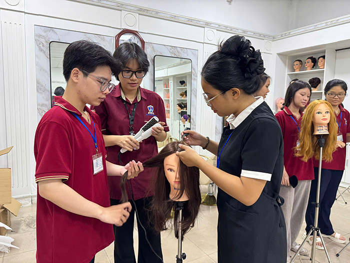 Em Bùi Thành Nhân, sinh năm 2009, đang theo học tại trường, cho biết: “Lúc đầu, em cũng băn khoăn vì sợ nghề này chỉ dành cho nữ, nhưng khi tìm hiểu kỹ thì thấy đây là ngành có tiềm năng và không phân biệt giới tính. Em thích cảm giác giúp người khác tự tin hơn, thấy mình cũng có thể làm được điều đó”.