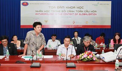 Sáng 26-4, nhiều nhà khoa học Việt Nam và nước ngoài đã tham gia buổi tọa đàm khoa học "Nhân học trong bối cảnh toàn cầu hóa", do Trường Đại học Khoa học Xã hội và Nhân văn TPHCM tổ chức (ảnh).