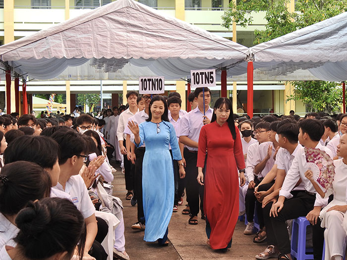 Ngay từ sáng sớm, sân trường rộn ràng với màn diễu hành của khối học sinh lớp 10 – thế hệ mới chính thức bước vào mái trường THPT Trung Phú. Trong tiếng vỗ tay chào đón của các anh chị lớp 11, 12, những gương mặt tân học sinh khởi đầu hành trình ba năm học tập, rèn luyện đầy hứa hẹn.