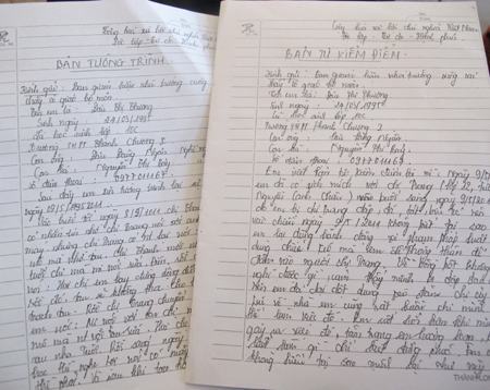 Bản tường trình và tự kiểm điểm của nứ sinh Thương gửi ban giám hiệu trường THPT Thanh Chương I
