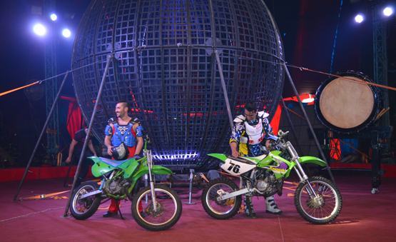 Đó cũng là sự mạo hiểm đáng sợ của tiết mục mô tô bay của các nam nghệ sĩ đến từ Achentina khi chạy xe với tốc độ cao trong một chiếc lồng sắt. Nhờ quán tính và lực hướng tâm nên chiếc xe giống như có cục nam châm ở giữa tâm lồng sắt để chiếc mô tô có những vòng quay tít mù choáng mặt. Tất cả đều thể hiện đẳng cấp quốc tế của bộ môn nghệ thuật xiếc đang trên đường phát triển của một số quốc gia láng giềng.