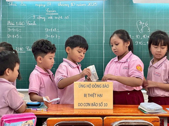 Thầy trò Trường Tiểu học Nguyễn Thị Định, phường Tân Thuận, TP.HCM cũng vừa trao gửi những phần quà nhỏ yêu thương đến đồng bào vùng bão lũ, với số tiền gần 50 triệu đồng.
